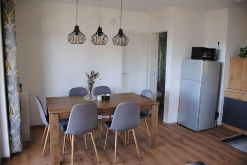 Nastanitev Hiška Mirna ravnica se nahaja v Moravskih Toplicah in ponuja brezplačno izposojo koles, vrt, skupni prostor za druženje, brezplačen WiFi ter razgled na vrt. Ta apartma nudi brezplačno zasebno parkirišče in skupno kuhinjo.