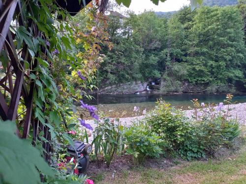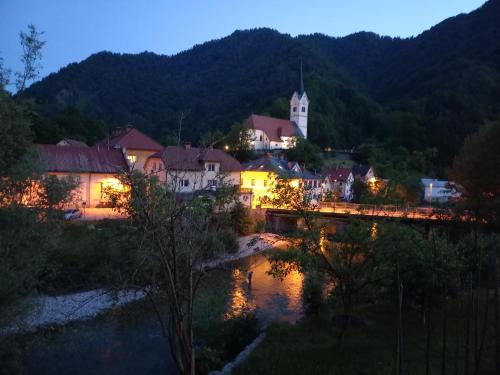Die Unterkunft Riverside Villa Avo - Apartment Martin, die über einen Garten, einen eigenen Strandbereich und eine Terrasse verfügt, bietet Übernachtungsmöglichkeiten in Spodnja Idrija mit kostenlosem WLAN und Stadtblick.